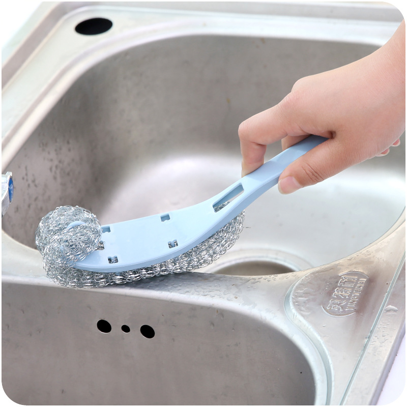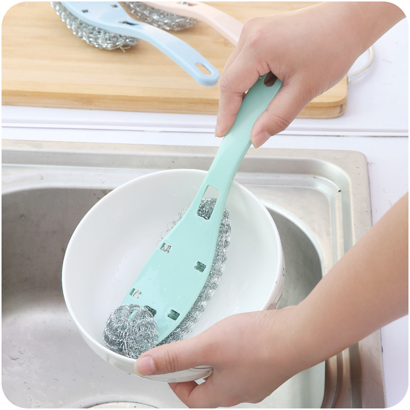 / 創意帶手柄鋼絲球刷 廚房長柄可拆不臟手不銹鋼洗碗去污清潔刷子