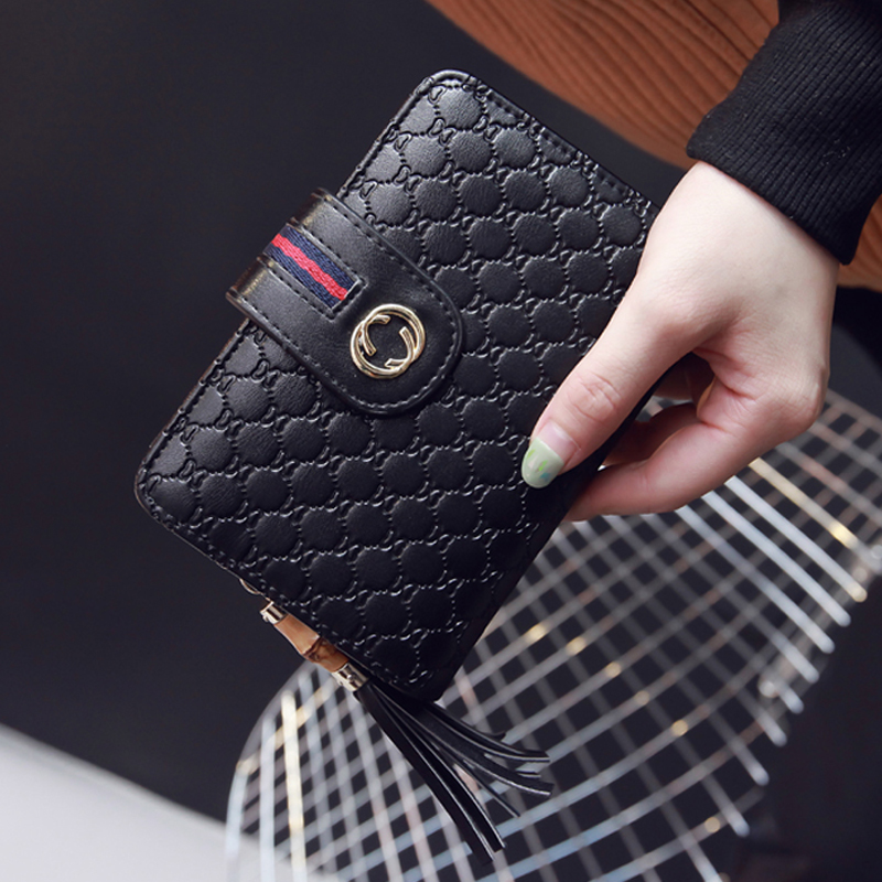 / 長款兩折疊時尚簡約搭扣新款歐美復古女士個性潮流手拿小錢包