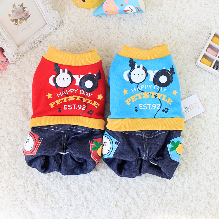 / 小兔耳機寵物泰迪狗狗貴賓犬貓咪比熊衣服裝秋冬四腳裝