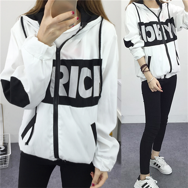 / 2017春裝新款原宿女裝連帽風衣寬松大碼短款外套女春秋韓版學生潮