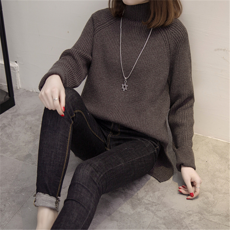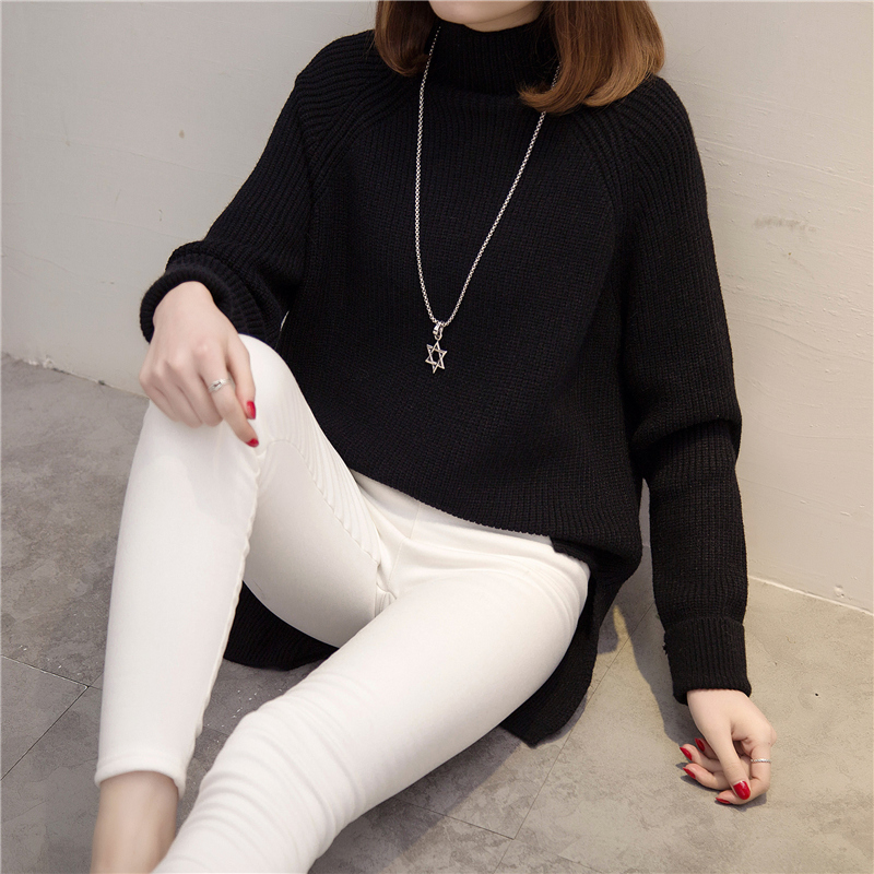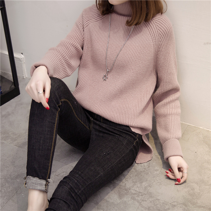 / 新款潮上衣秋冬裝套頭高領針織衫女裝韓版寬松純色冬季打底衫