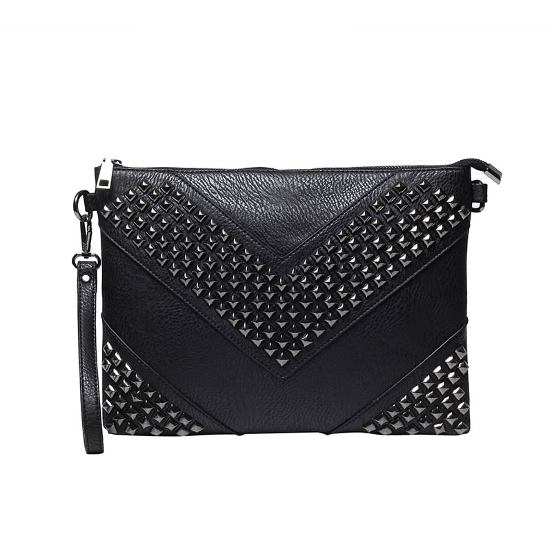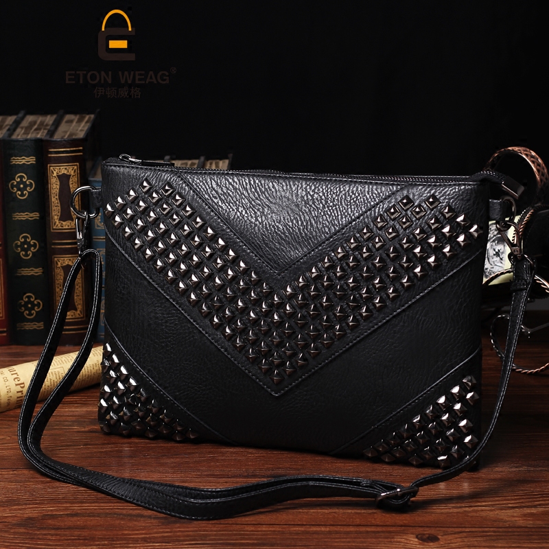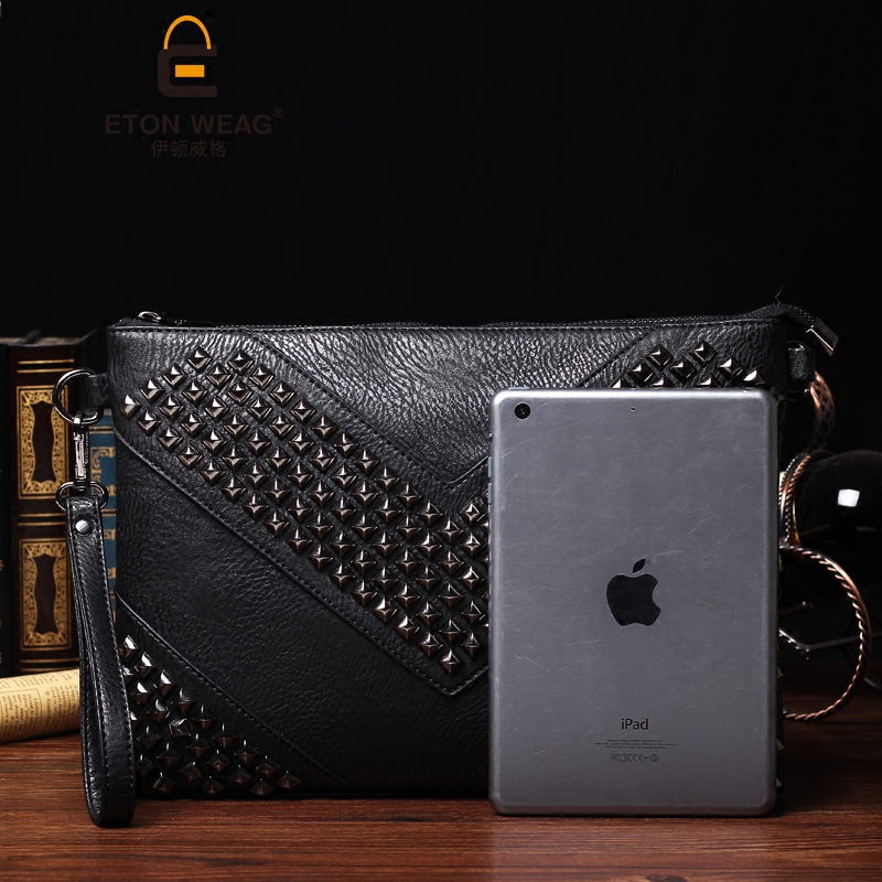 / 新款潮流鉚釘手抓包時尚韓版男女士手拿包休閑輕商務單肩包