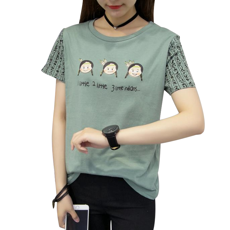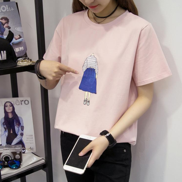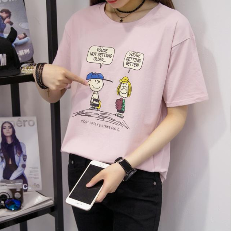 韓國新款卡通大碼體恤衫學生夏裝上衣寬松露肩短袖t恤女打底