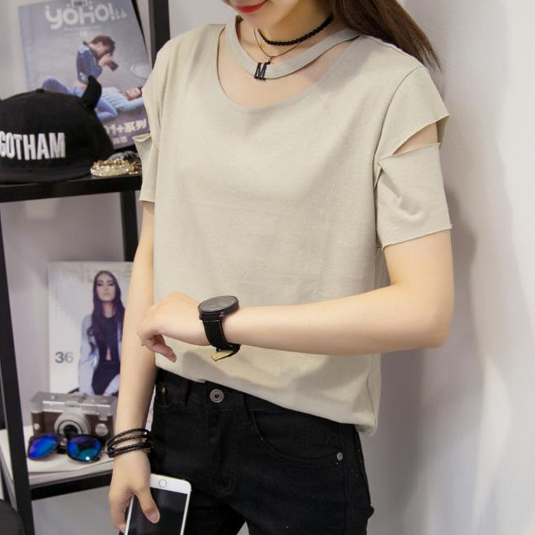 / 韓國新款卡通大碼體恤衫學生夏裝上衣寬松露肩短袖t恤女打底