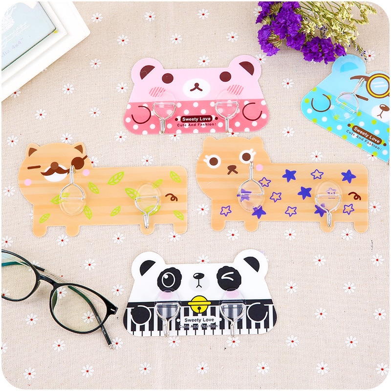 / 可愛卡通廚房二連勾粘膠掛鉤門后免打孔無痕粘鉤掛衣架可重復使用