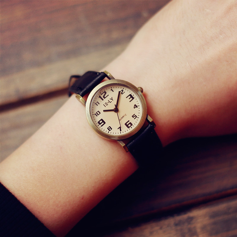 韓國簡約復古小表盤女士手表女初中學生原宿皮帶休閑女款石英潮表