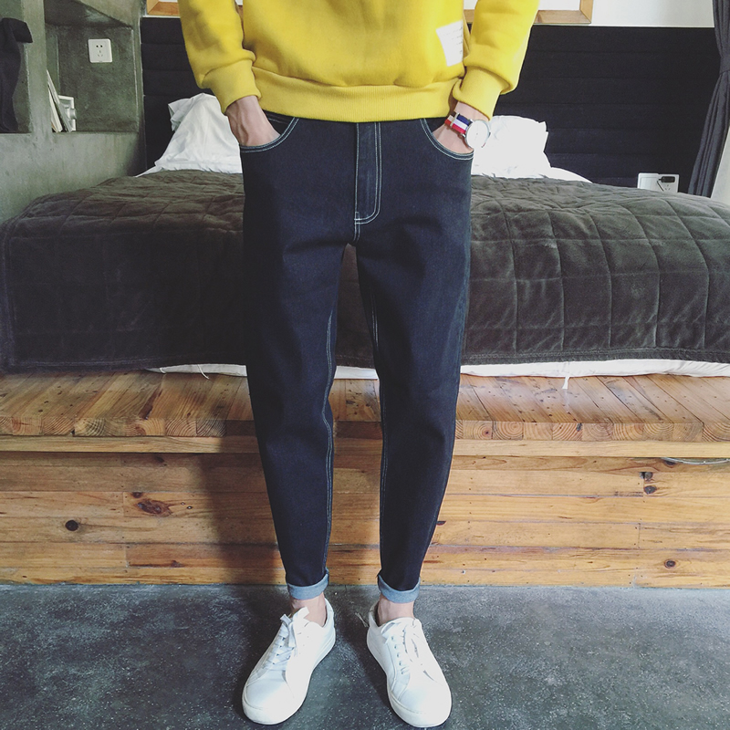 秋季新款港風哈倫褲版型休閑牛仔褲錐形男士小腳褲