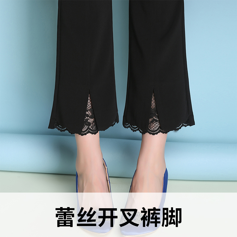 / 開叉喇叭褲女九分褲黑色顯瘦高腰微喇褲新款夏季薄款西裝褲休閑褲