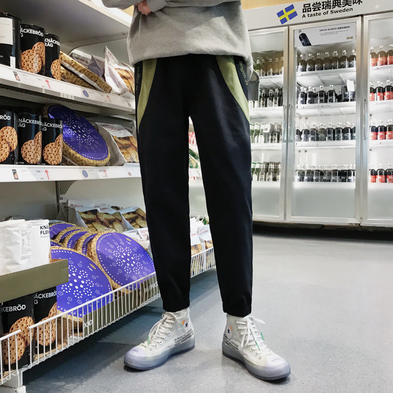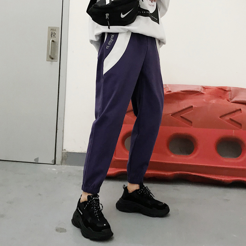 文藝男女店2018新款寬松休閑褲秋季男士褲子字母繡花束腳褲哈倫褲