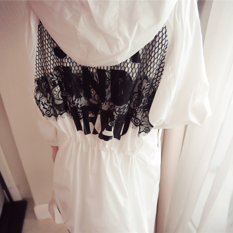 名稱/NANE  拼蕾絲字母印花防曬服抽繩連帽包邊寬松風衣