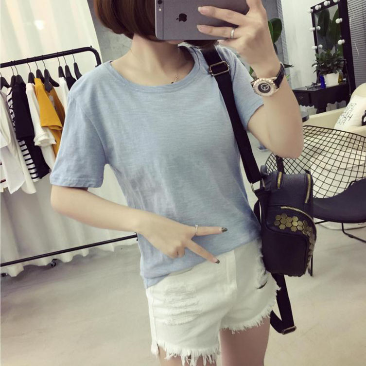 韓版女裝白色竹節棉t恤女休閑簡約打底衫棉短袖上衣夏裝體恤