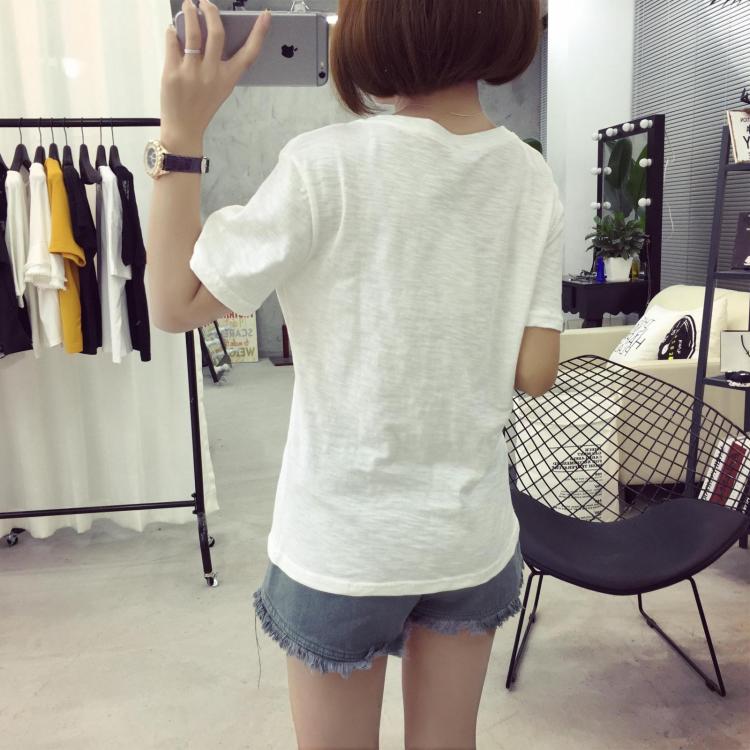 / 韓版女裝白色竹節棉t恤女休閑簡約打底衫棉短袖上衣夏裝體恤