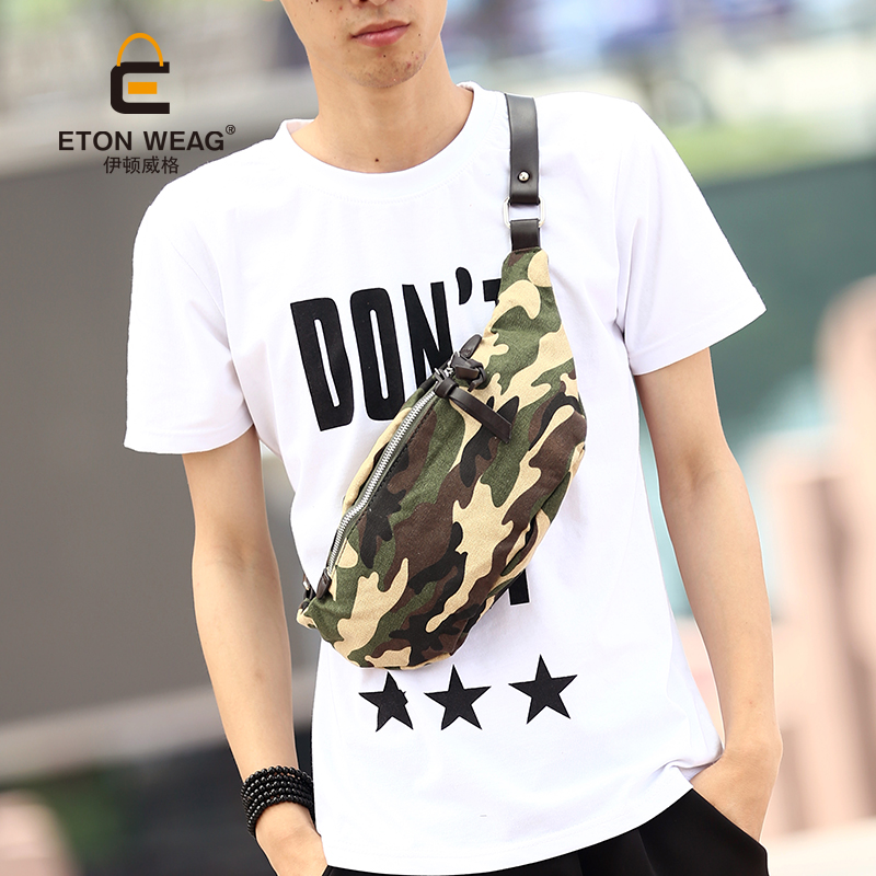 / 新款日系死飛斜跨背包迷彩帆布潮男胸包街頭歐美風斜挎包男