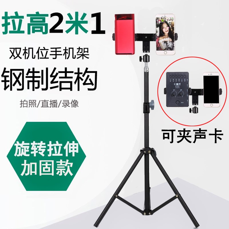 / 雙手機三腳架戶外直播設備兩個手機架子多功能快手主播落地式支架