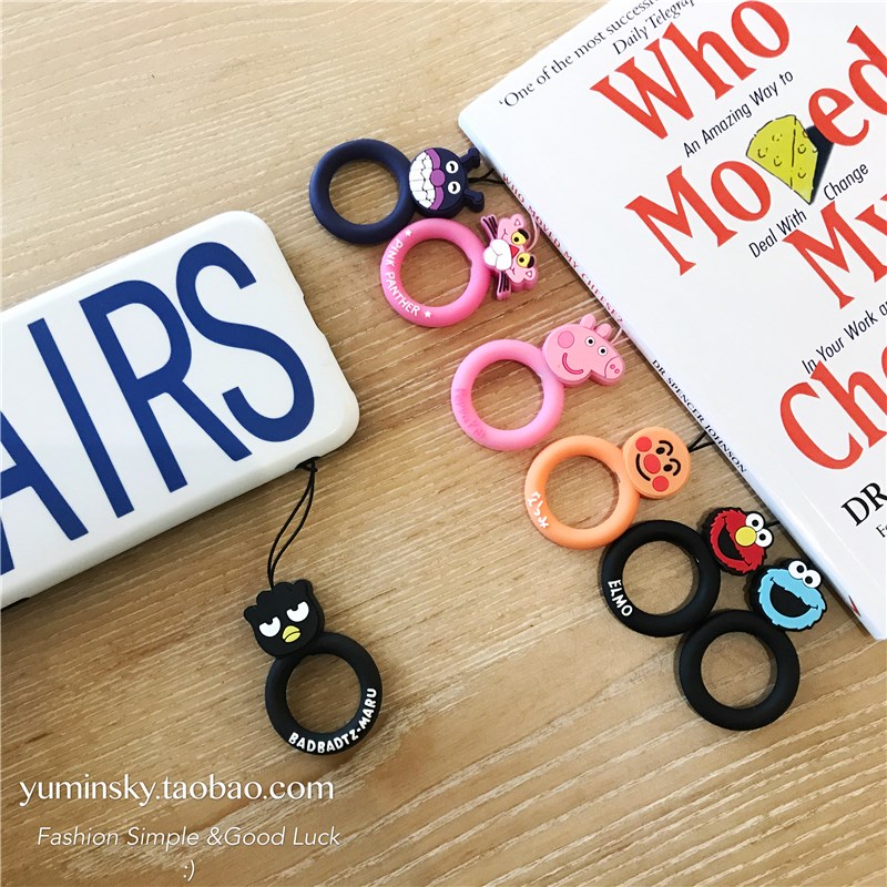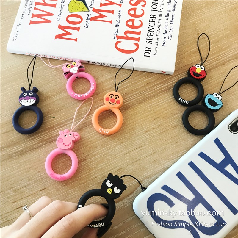 / 卡通硅膠小指環手繩子掛飾掛件手機通用防摔韓國情侶可愛蘋果飾品
