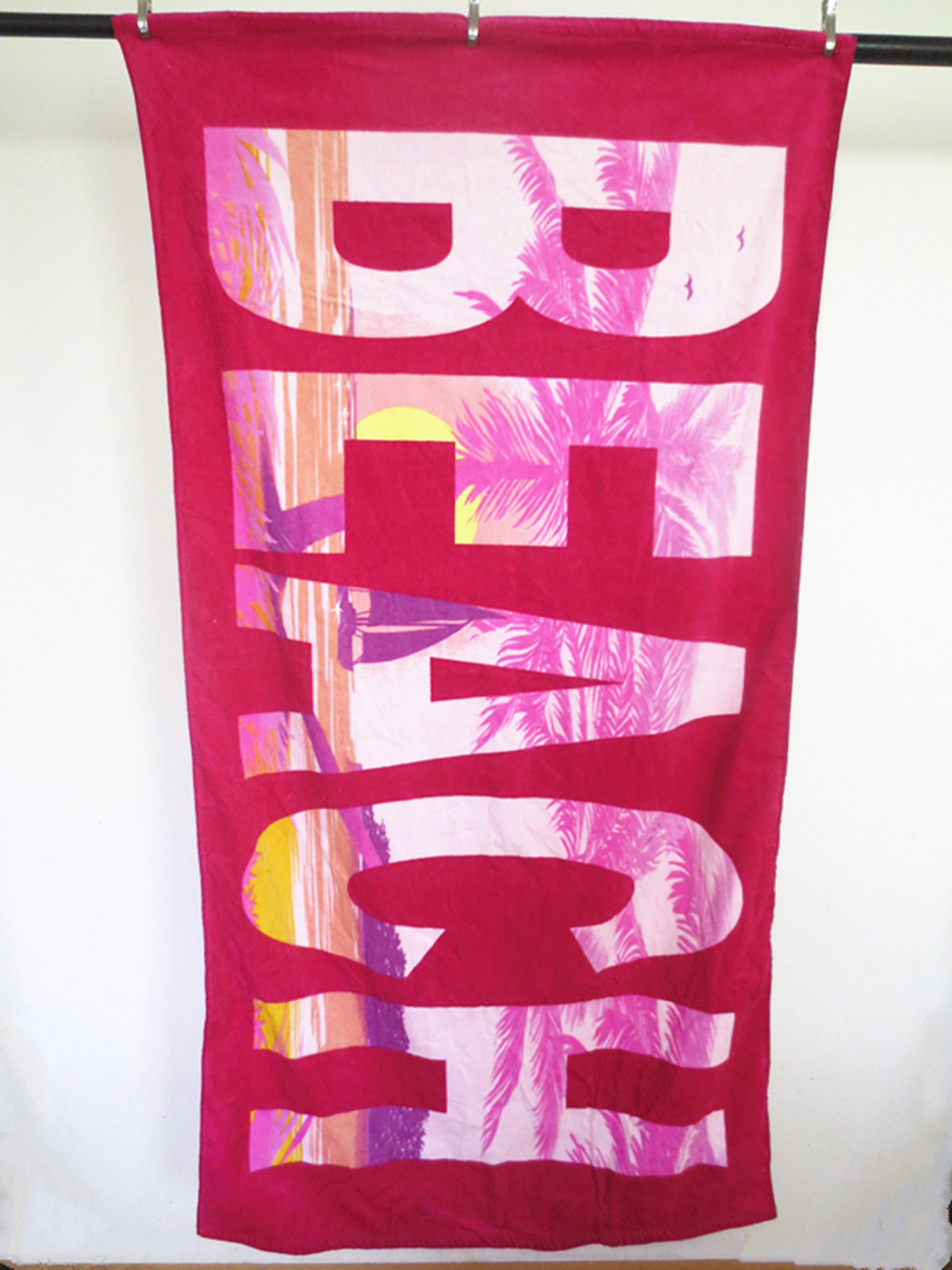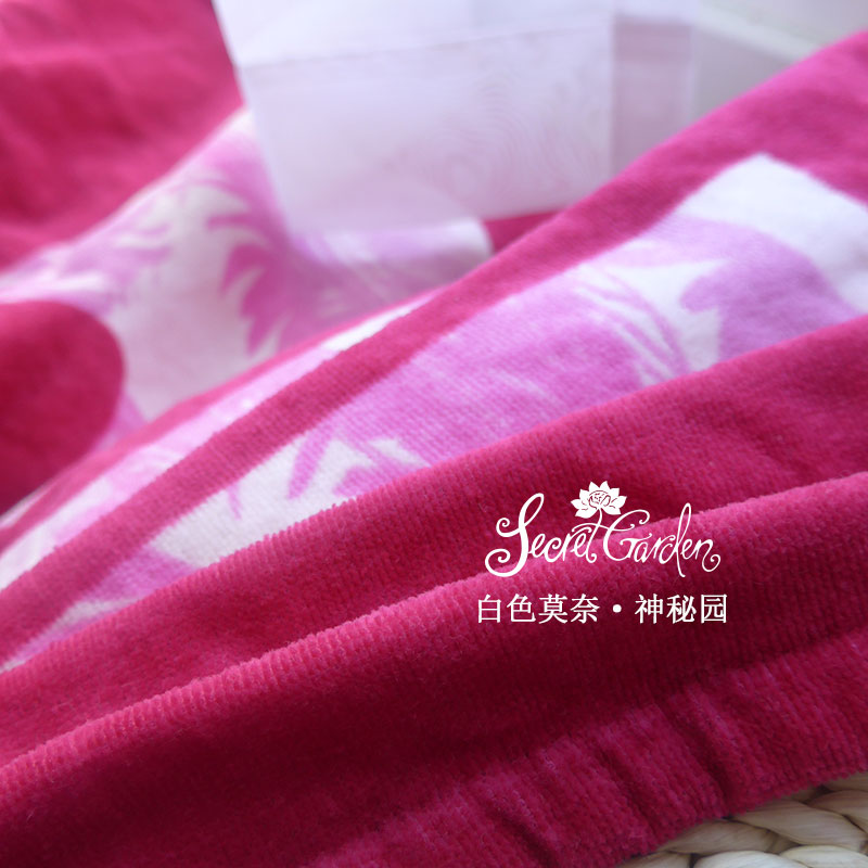【包含】一件浴巾【質地】純棉 色織而非印花【色調】玫紅色調色如圖【尺寸】中號:90*160cm(請允許些微測量誤差)【工藝】毛圈加割絨