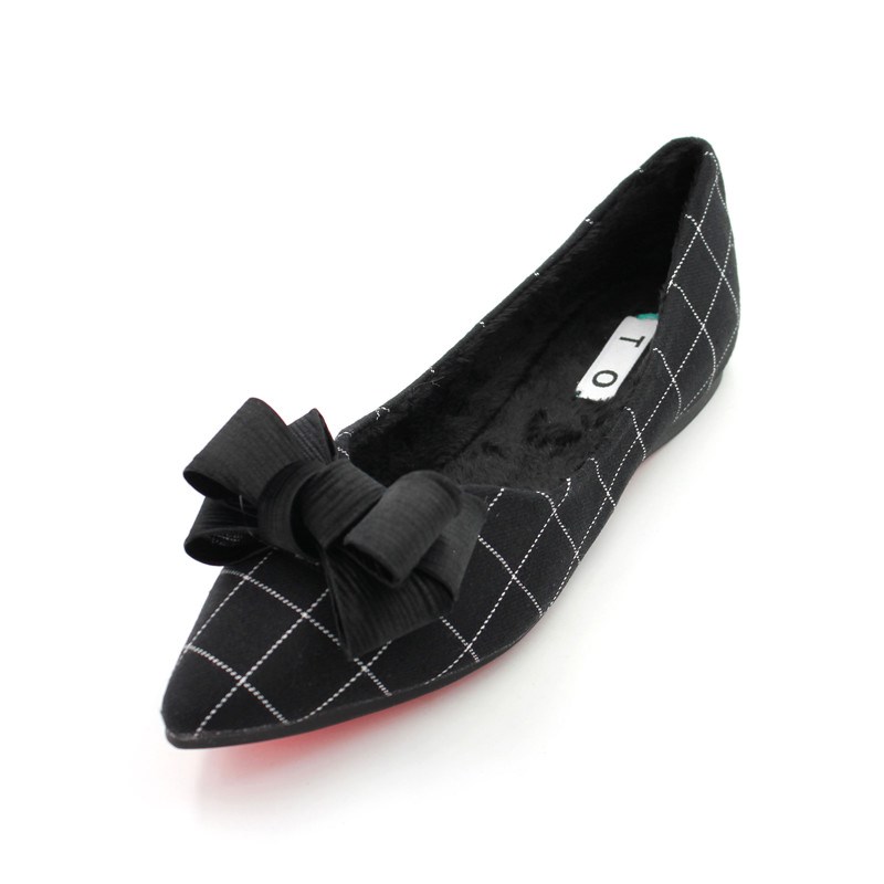 / 韓版2018秋冬新款百搭蝴蝶結毛毛鞋軟底加棉瓢鞋淑女鞋加絨平底鞋