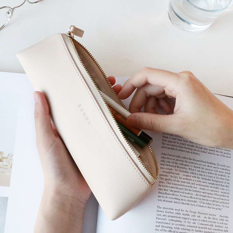 / 云木雜貨 簡約PU皮質筆袋文藝三角文具盒小清新彩色鉛筆收納袋