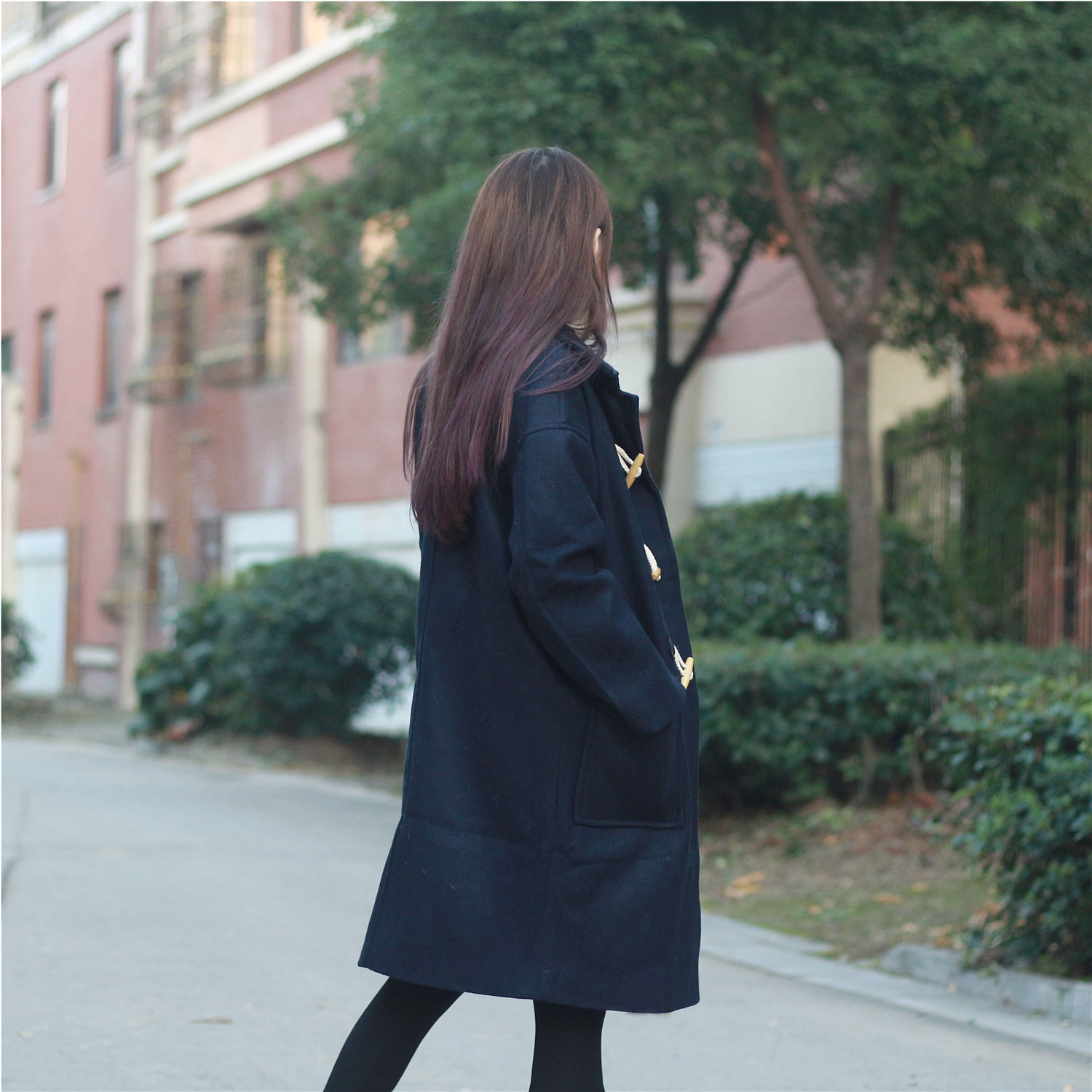韓國chic冬款復古牛角扣百搭中長款寬松毛呢外套學生大衣女