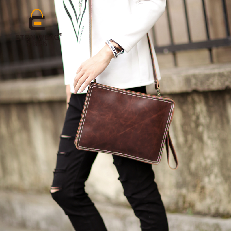新款復古手拿包簡約文件包時尚休閑單肩包商務文件包潮包