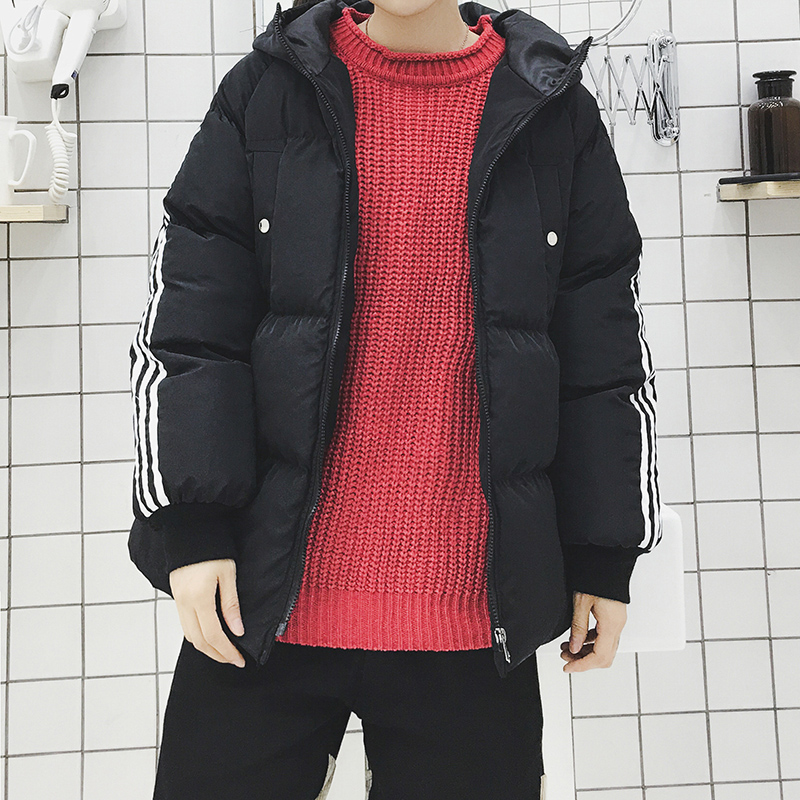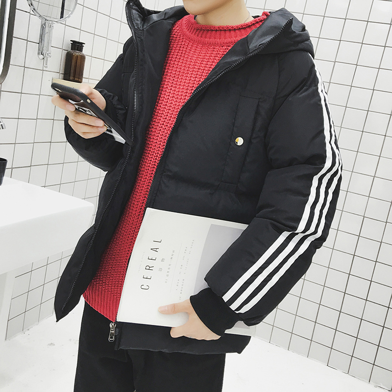 / 男裝韓版加厚男士連帽棉服三杠加厚短款棉衣面包服