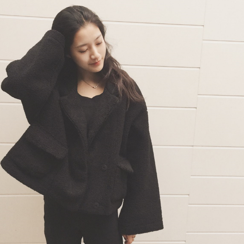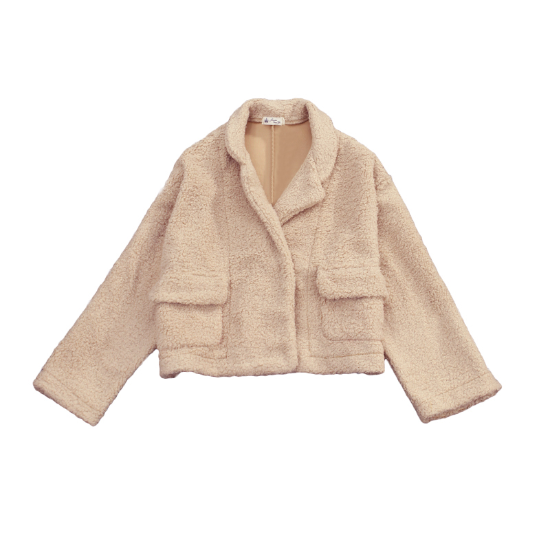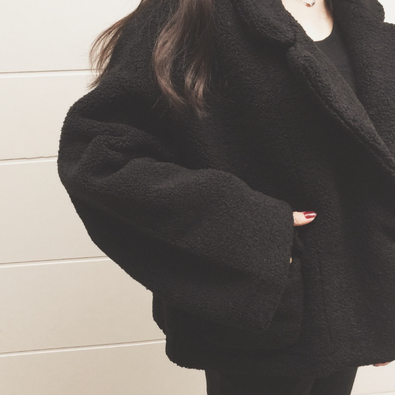 / 韓國冬款寬松百搭翻領雙口袋加厚保暖羊羔毛純色短款外套女