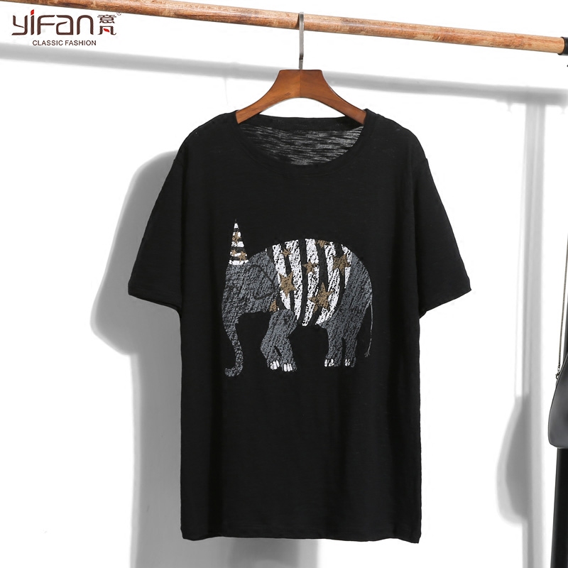 初夏寬松短袖純色竹節棉女裝T恤韓版復古大象印花上衣體恤新