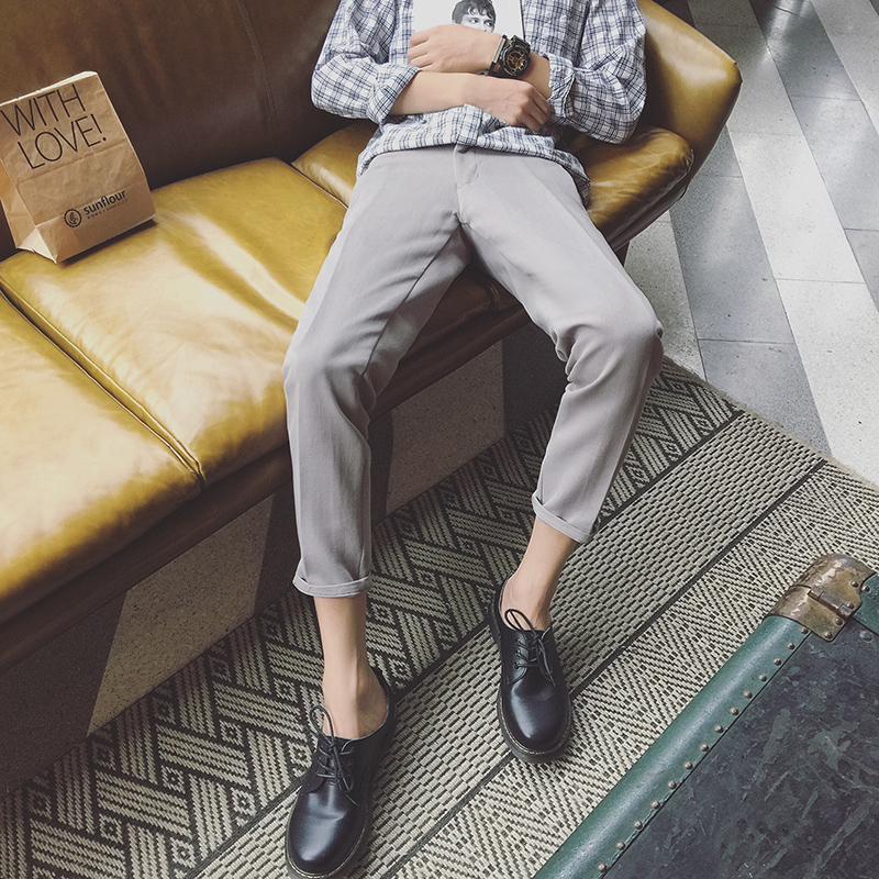 原創純色簡約潮男修身小腳錐形褲韓版港風秋休閑褲