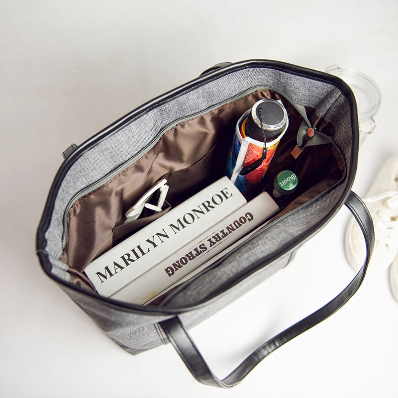 新款韓版麻紋帆布包女包時尚字母單肩大包休閑手提包電腦包潮