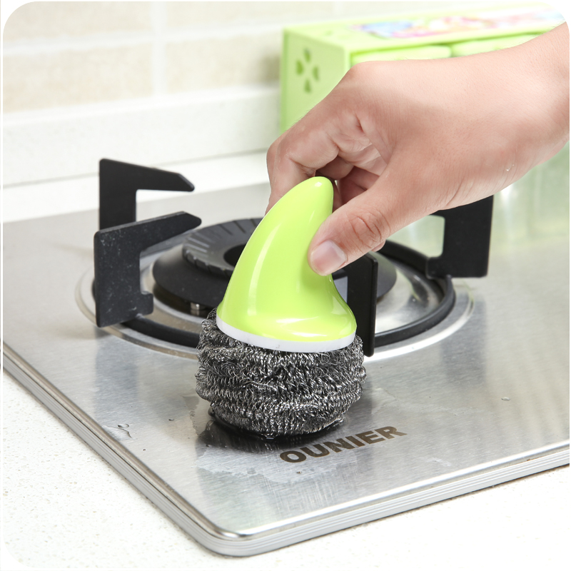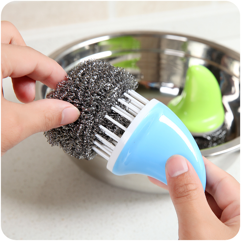創意鯊魚柄鋼絲球清潔球廚房耐用洗鍋刷帶柄去污刷子不臟手鐵絲球