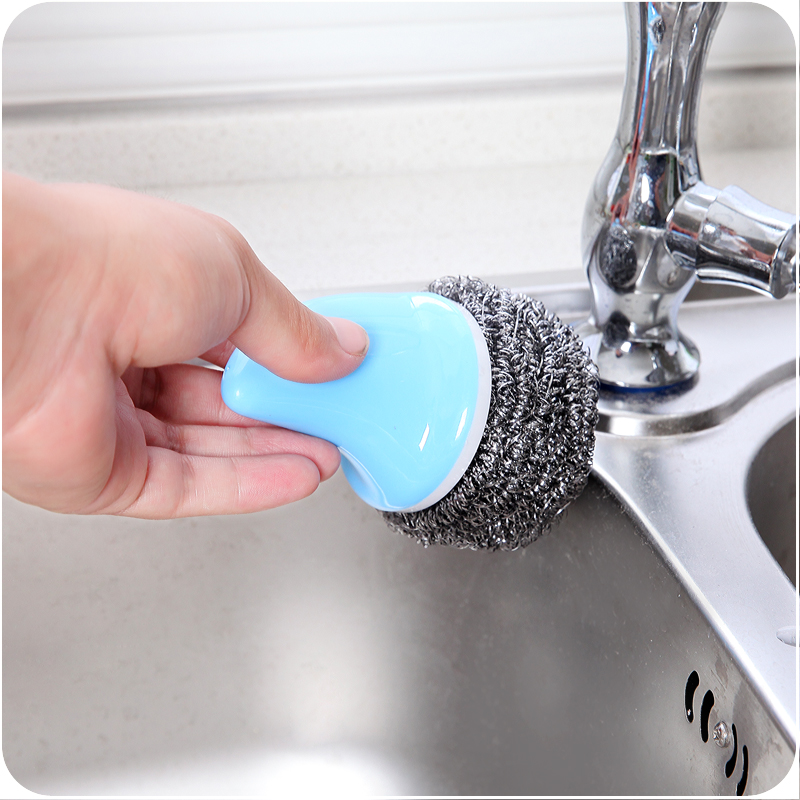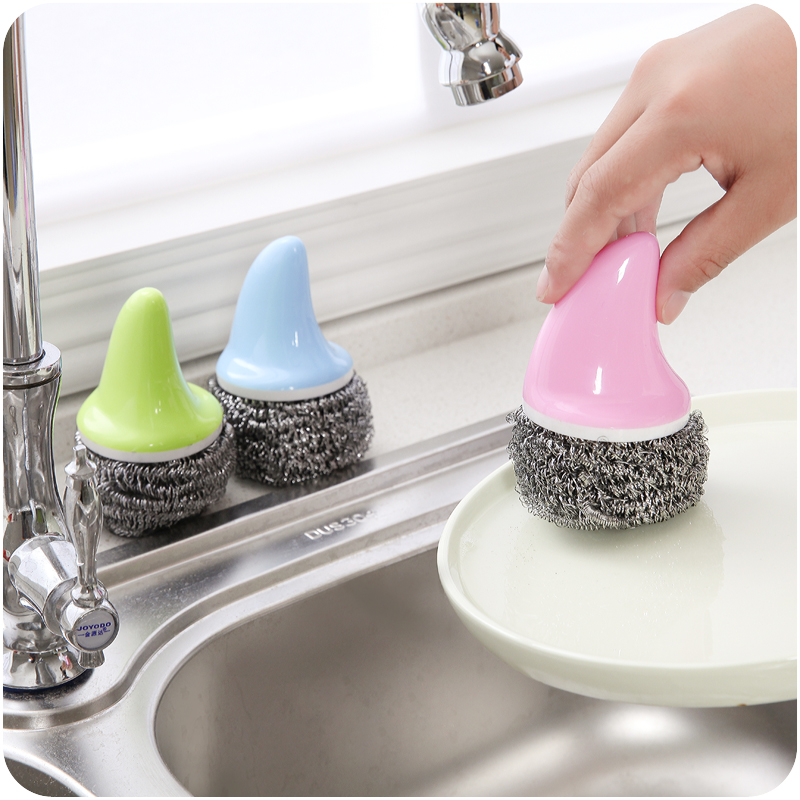 / 創意鯊魚柄鋼絲球清潔球廚房耐用洗鍋刷帶柄去污刷子不臟手鐵絲球
