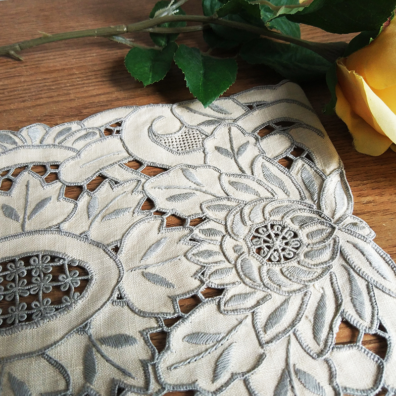 外貿田園風格蓮花奢華元素手工刺繡鏤空裝飾杯墊餐墊