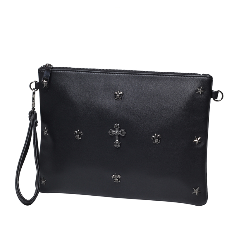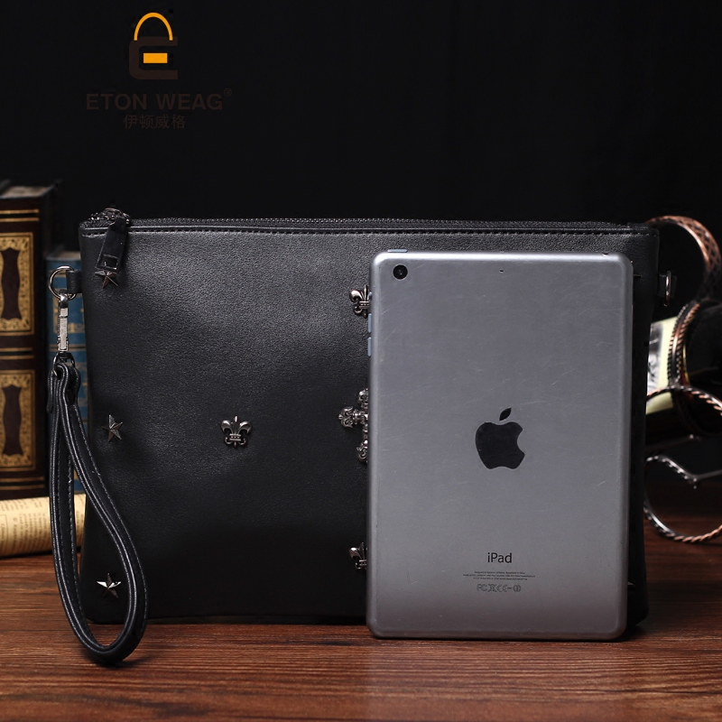 新款韓版男士新款手拿包潮流鉚釘手腕包休閑iPad單肩斜跨包