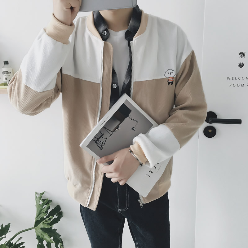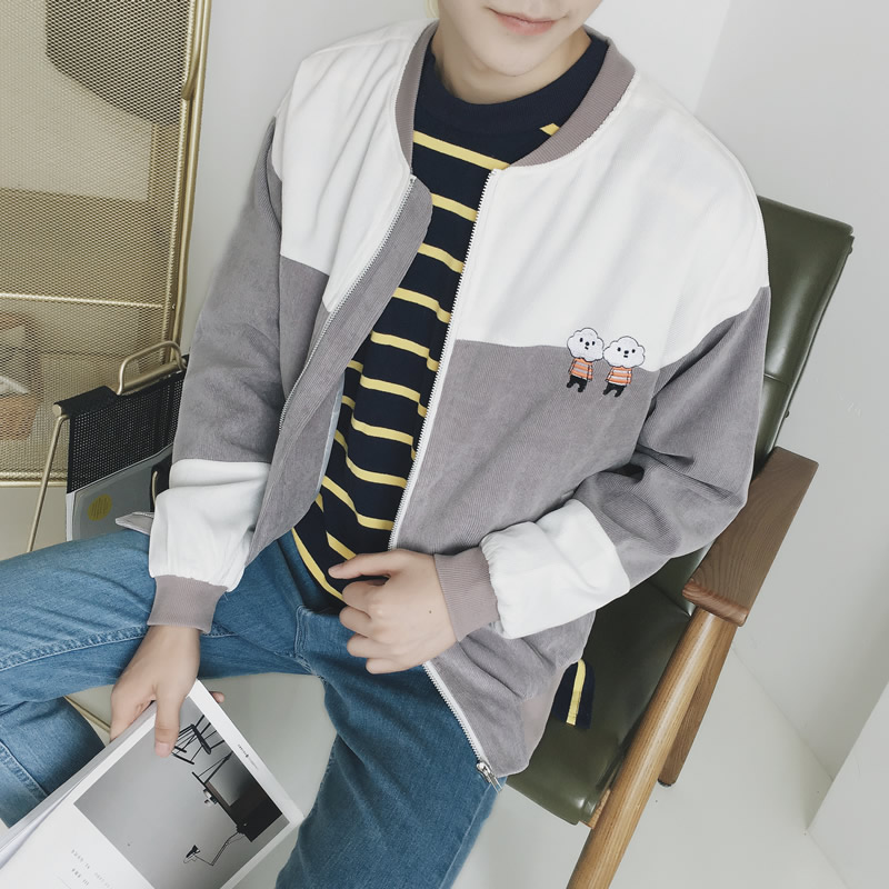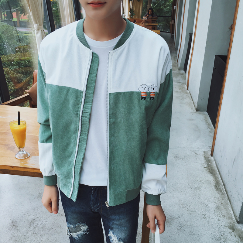 / 原創文藝清新小人燈芯絨港風棒球領夾克男韓版外套