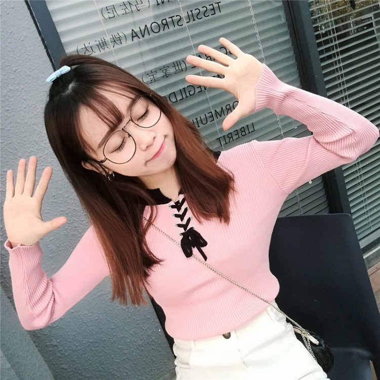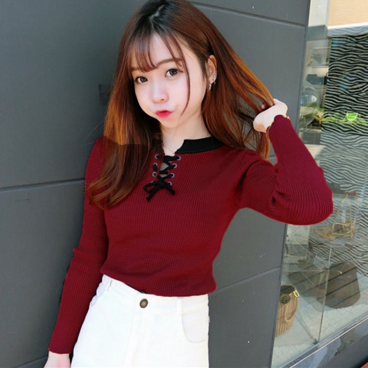 好看的撞色交叉綁帶針織上衣