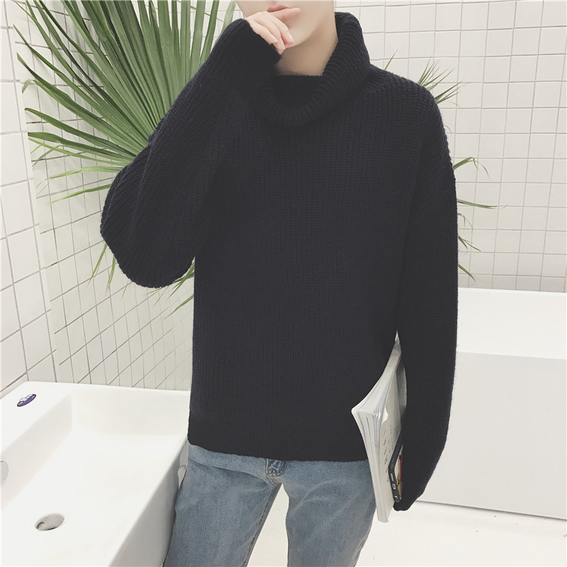 新款男裝韓版情侶寬松圓領套頭男士高領毛衣打底衫