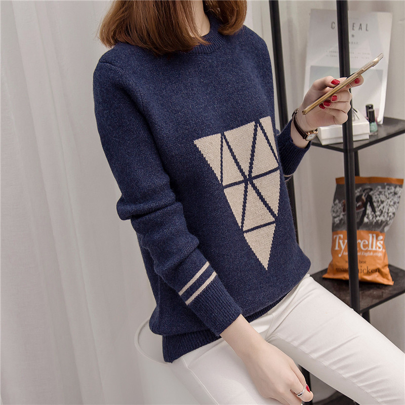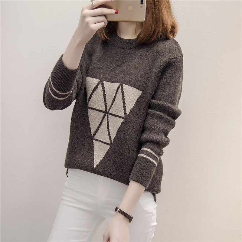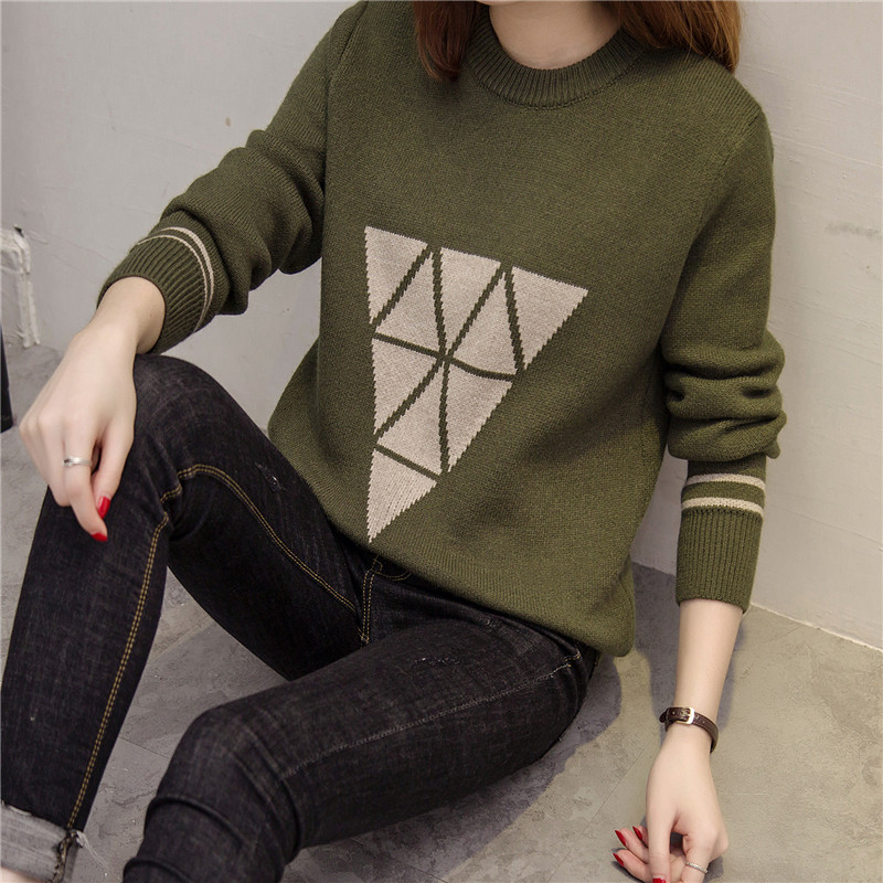 / 長袖打底衫圓領套頭寬松針織衫女上衣秋冬季加厚毛衣外套女裝潮