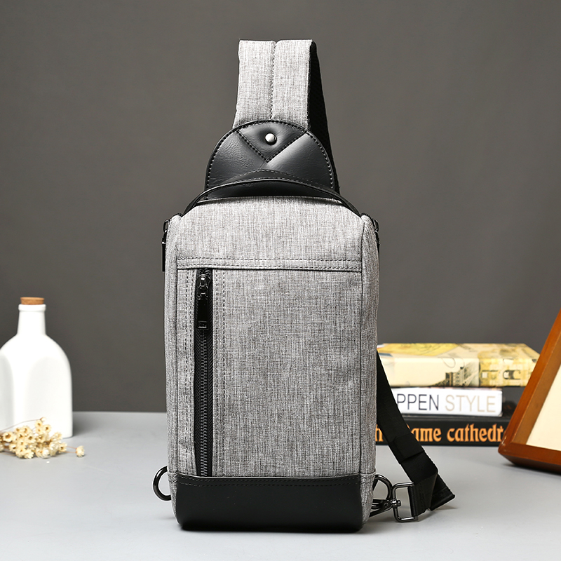 / 灰色后背包男士休閑胸包韓版日系男包單肩斜跨包潮流小挎包文藝