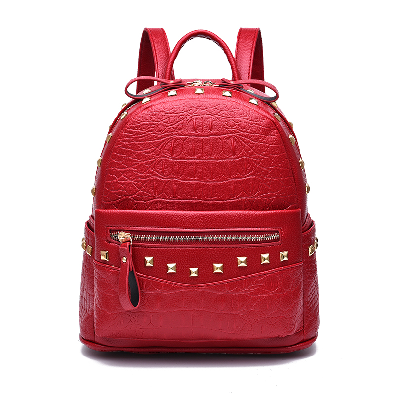 春夏新款女包柳釘雙肩包休閑學院風背包時尚旅行雙肩包編織潮
