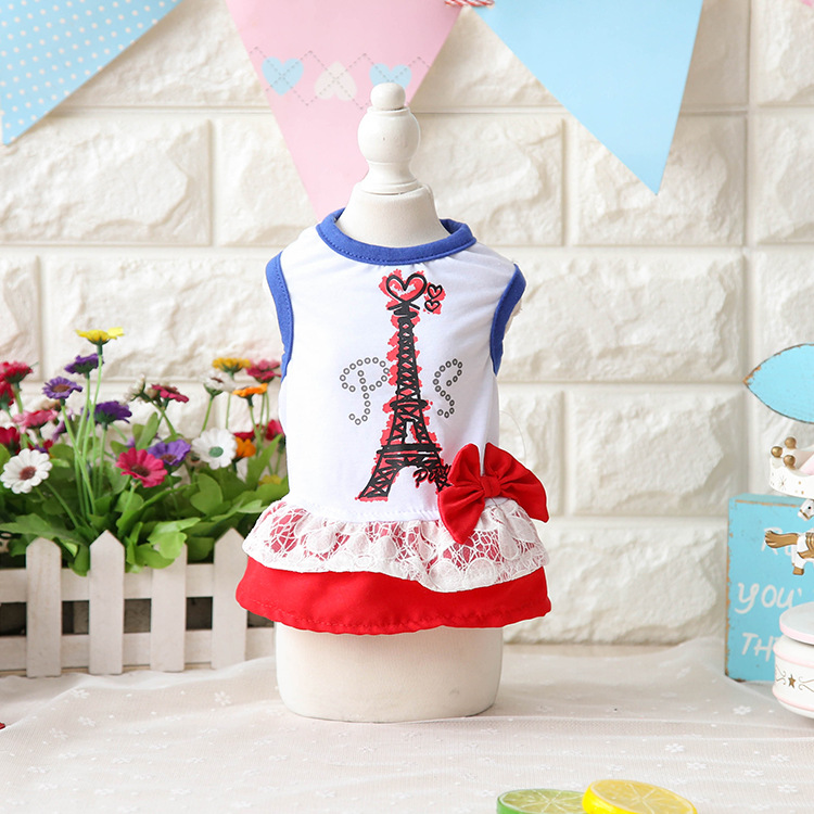 甜蜜の巴黎鐵塔~可愛寵物連衣裙泰迪裙比熊約克夏春夏裝博美背心