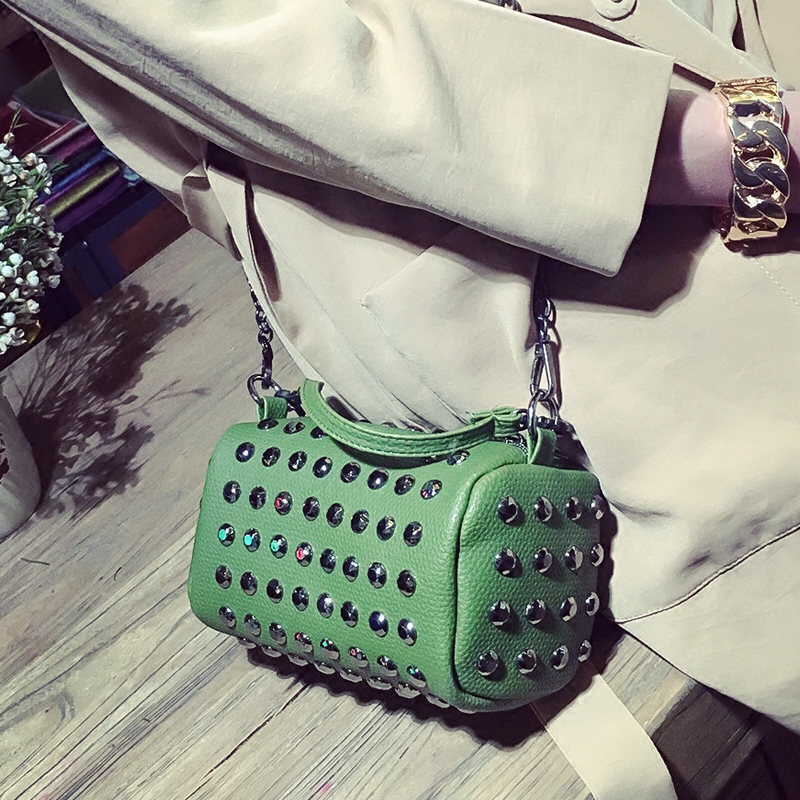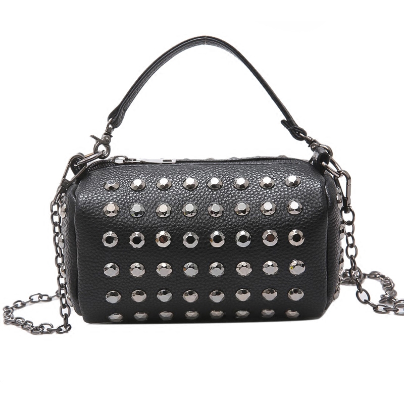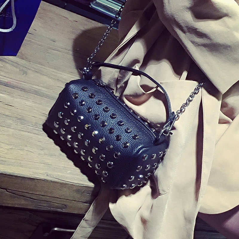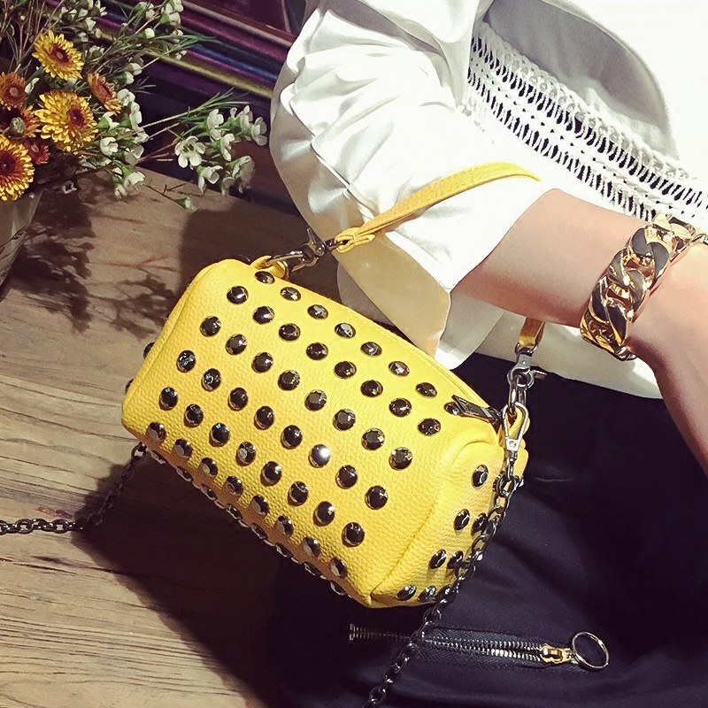 / 包包女新款潮韓版百搭斜挎包鏈條鉚釘單肩女包手提迷你小方包
