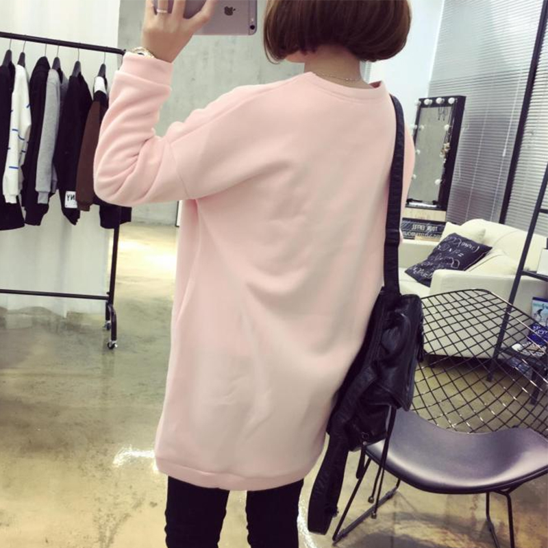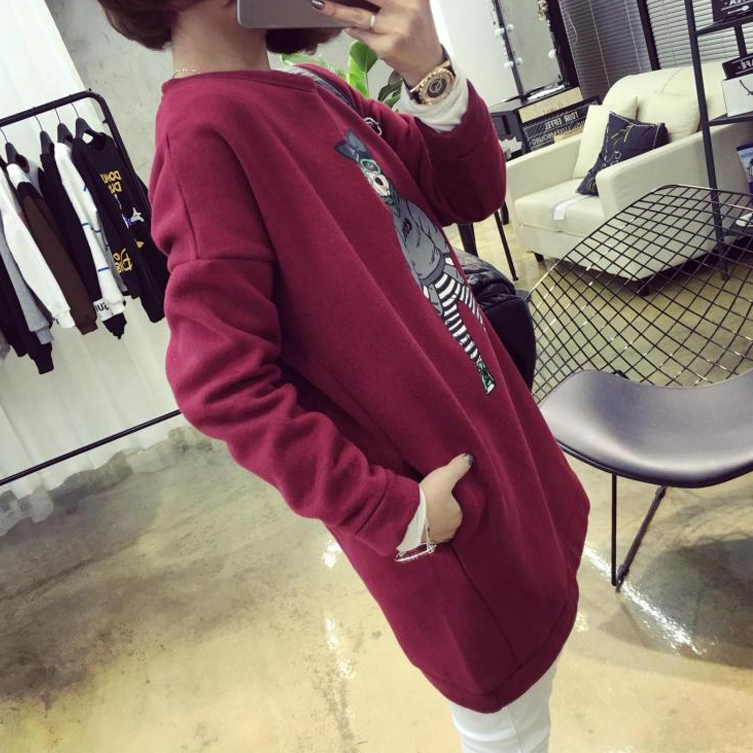 / 卡通印花學生圓領中長款女裝韓版小外套加絨加厚套頭保暖衛衣女潮
