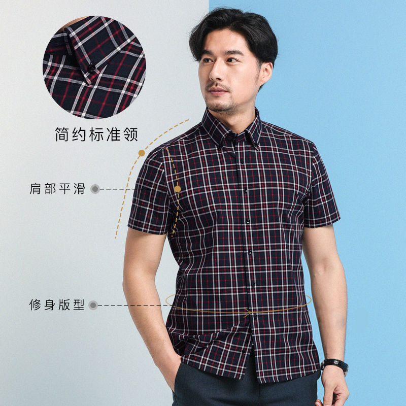 夏季純棉格子襯衫男士短袖潮流韓版修身青年襯衣薄款寸衫休閑時尚