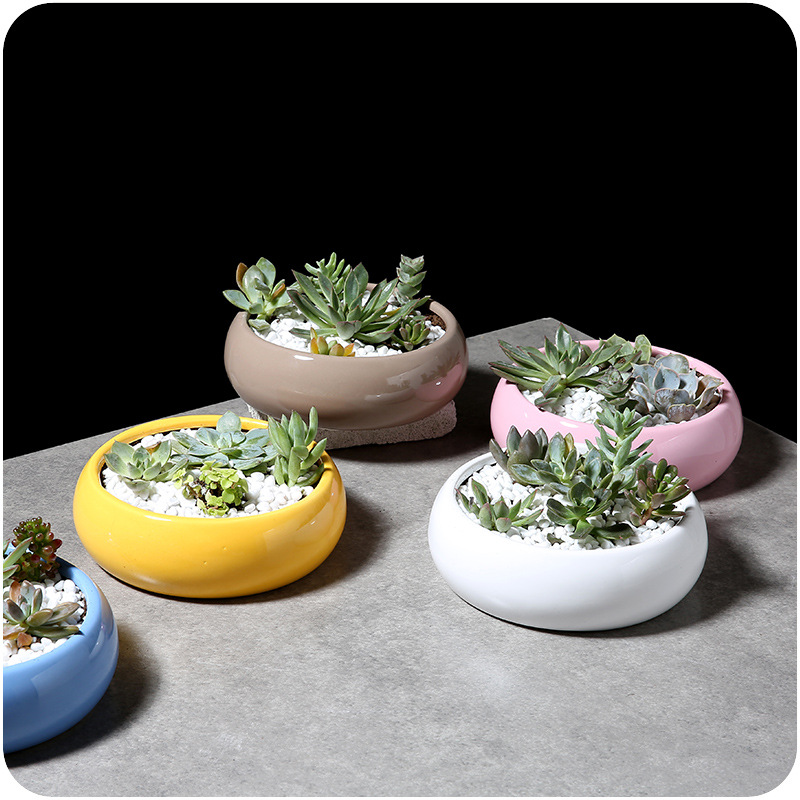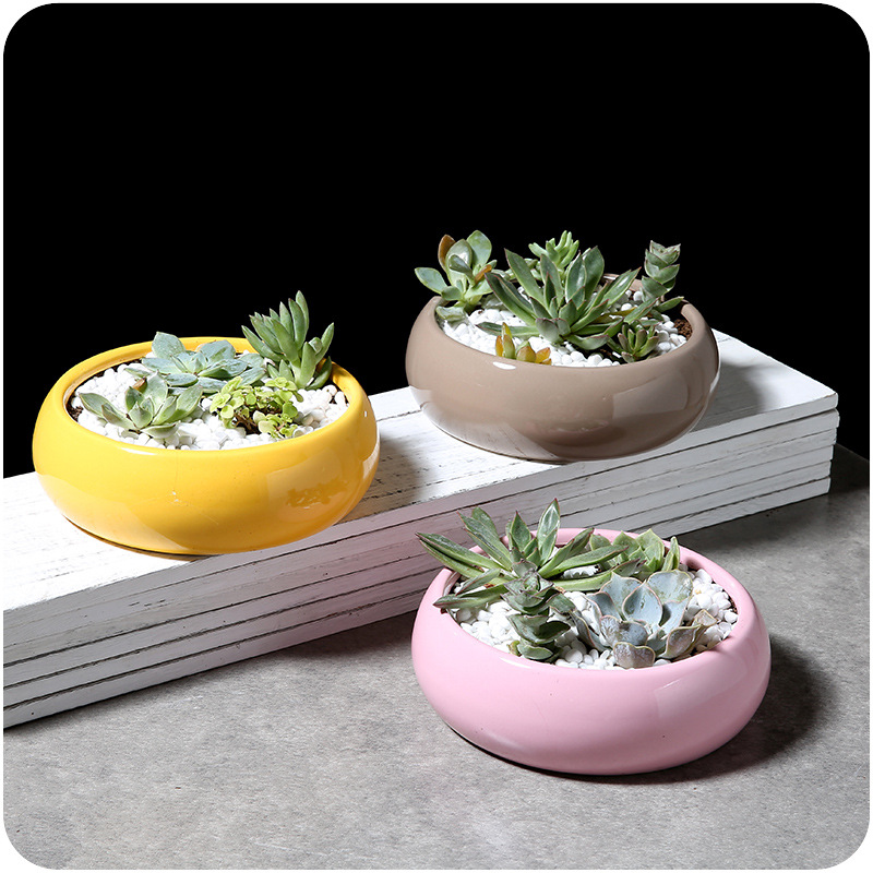 / 桌面創意大號陶瓷花盆簡約大肚圓形多肉植物花卉種植糖果色花器