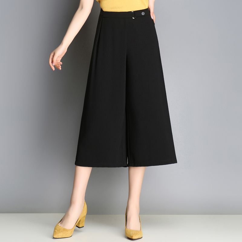 高腰闊腿褲女春夏新款七分褲春裝寬腿褲直筒寬松煙管褲女褲子