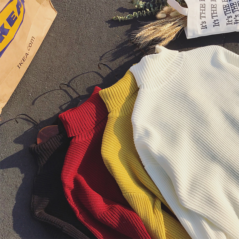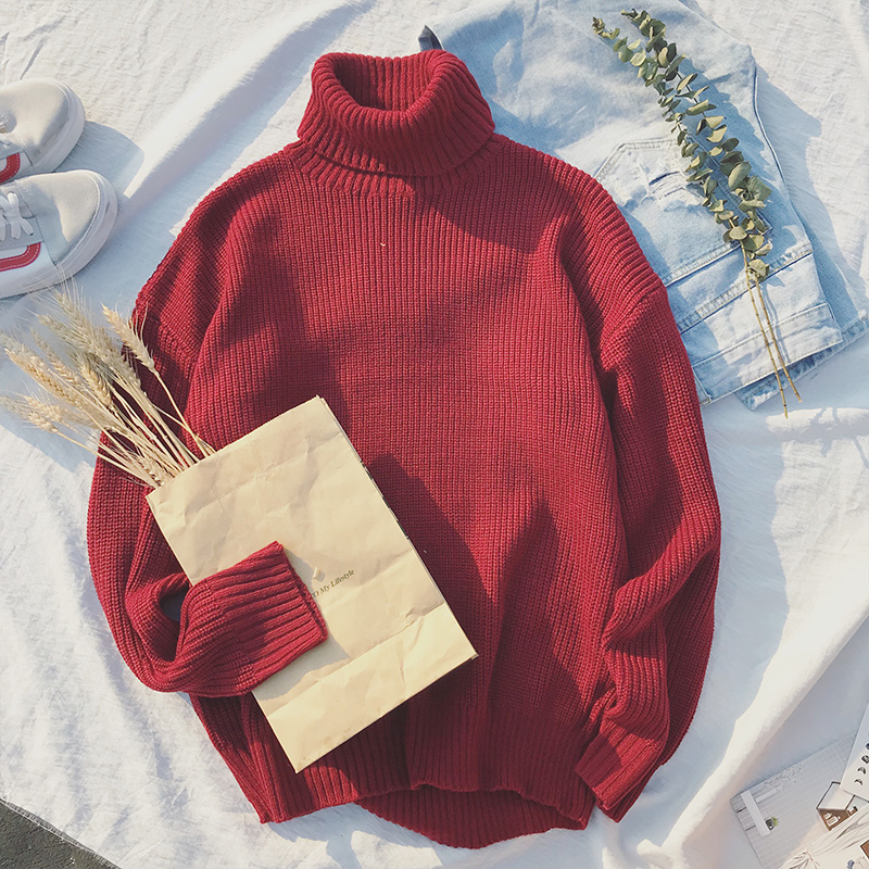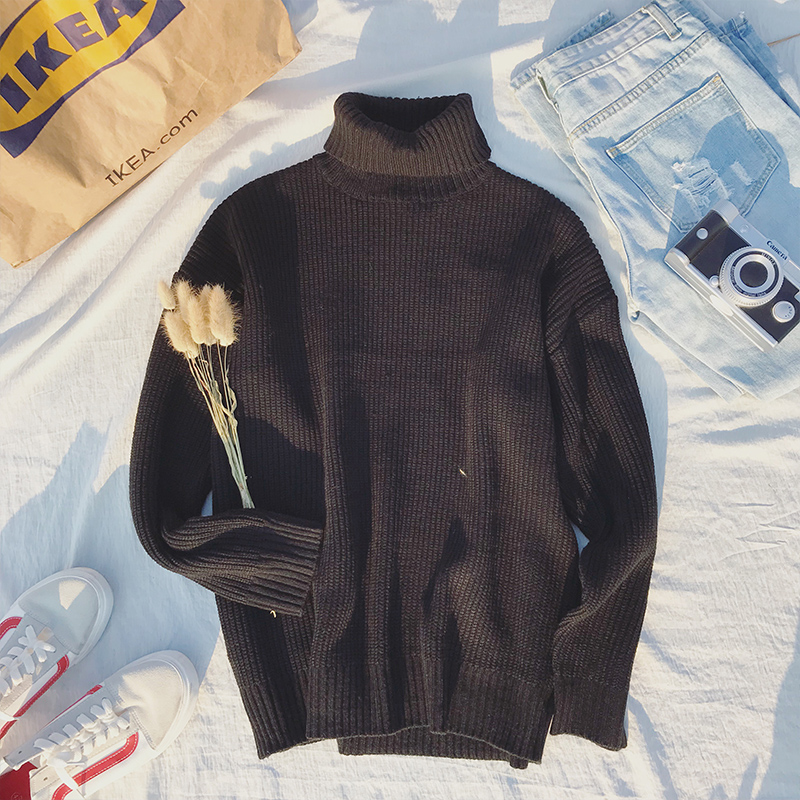 文藝男女店秋季社會小伙毛衣男士純色潮流針織衫韓版高領套頭外套