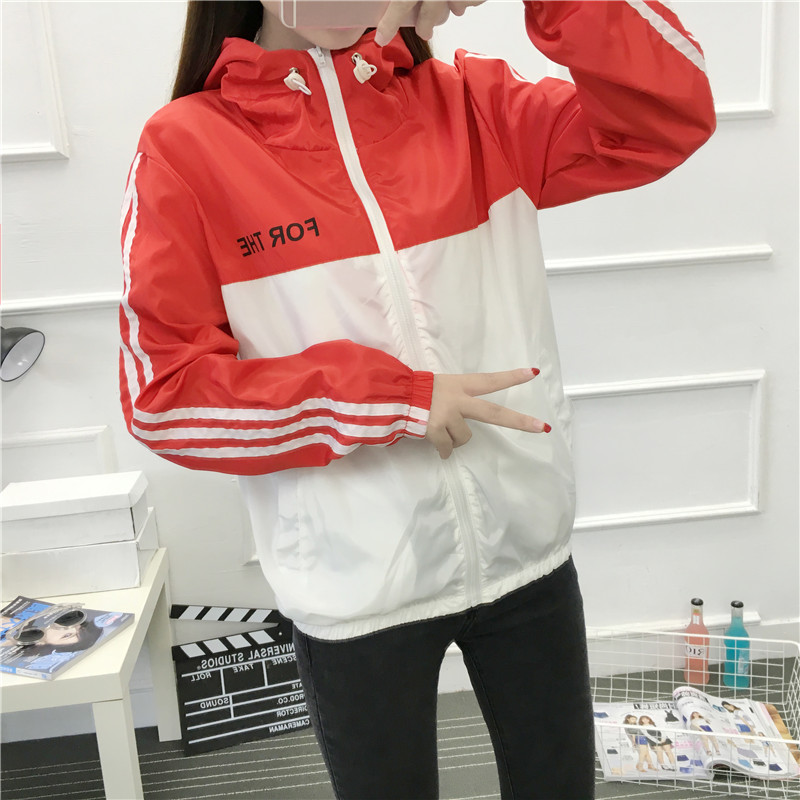 2017春夏季新款少女韓版潮連帽長袖短外套拉鏈防曬衣初中高中學生