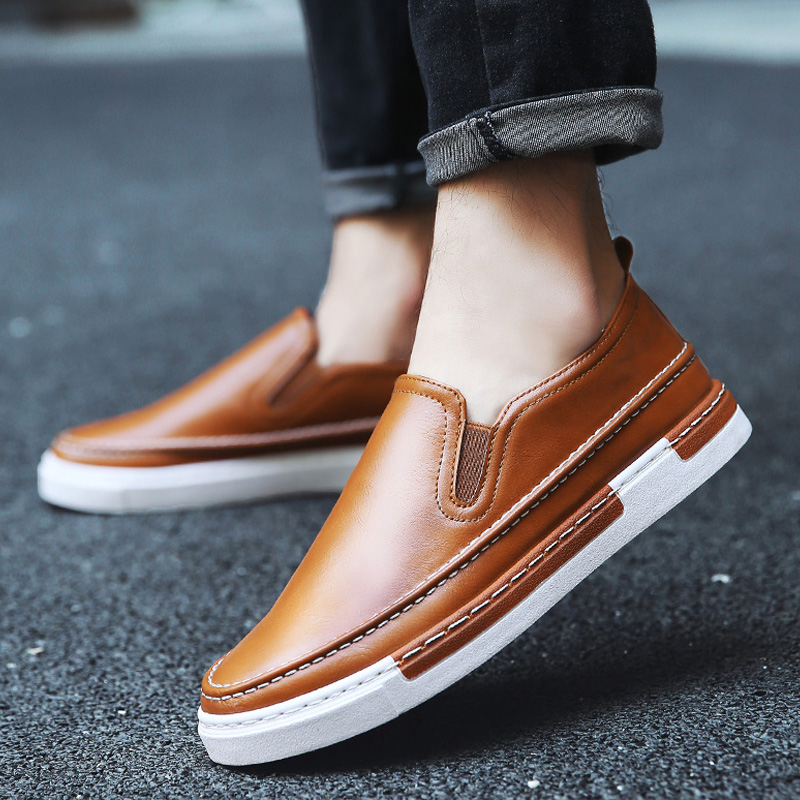 / 冬季新款韓版潮流男鞋子一腳蹬懶人鞋商務休閑皮鞋青少年春季潮鞋