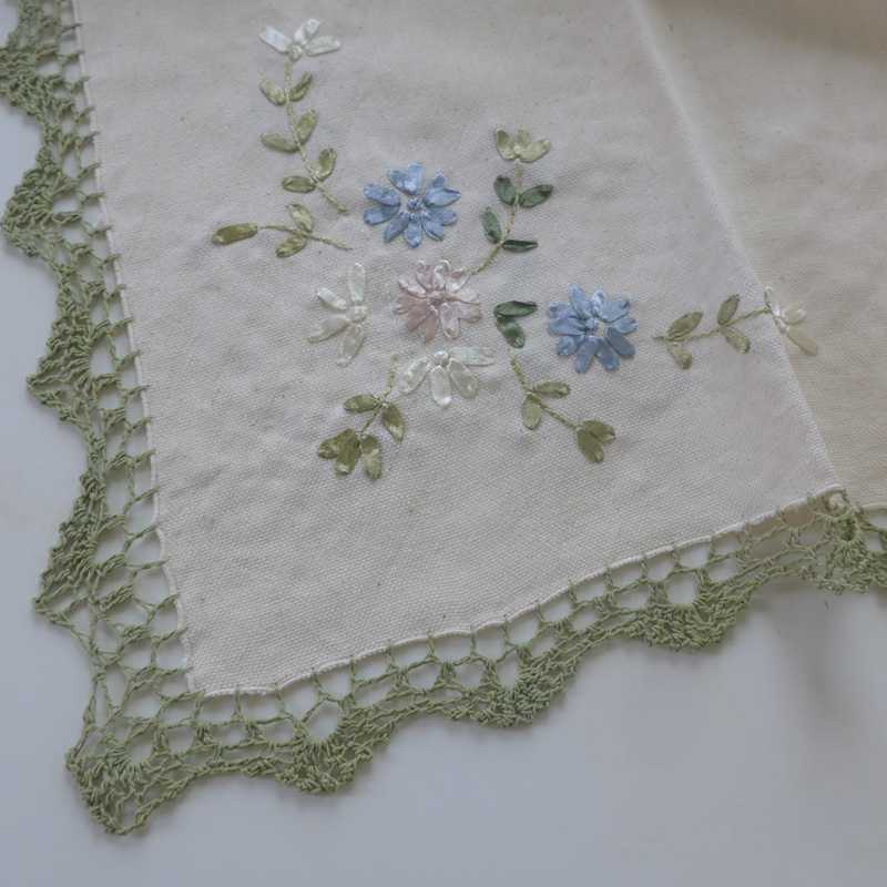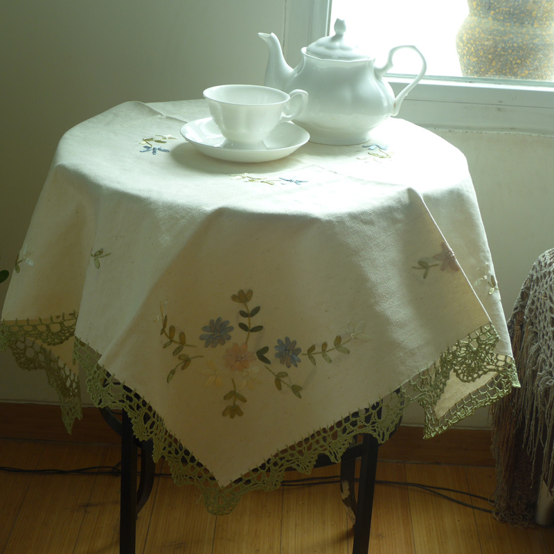 【包含】一件方桌布 【質地】純棉 【工藝】手工鉤針鑲邊,中間有絲帶繡花 【色調】本色底如圖 【尺寸】90*90cm(手工隨機抽樣測量,恐有些微尺寸誤差)