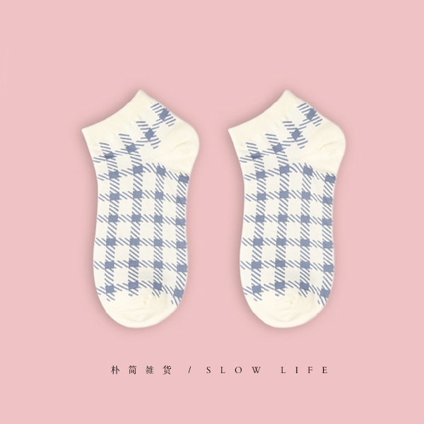 樸簡 秋冬日系文藝女生中短筒簡約格子襪子